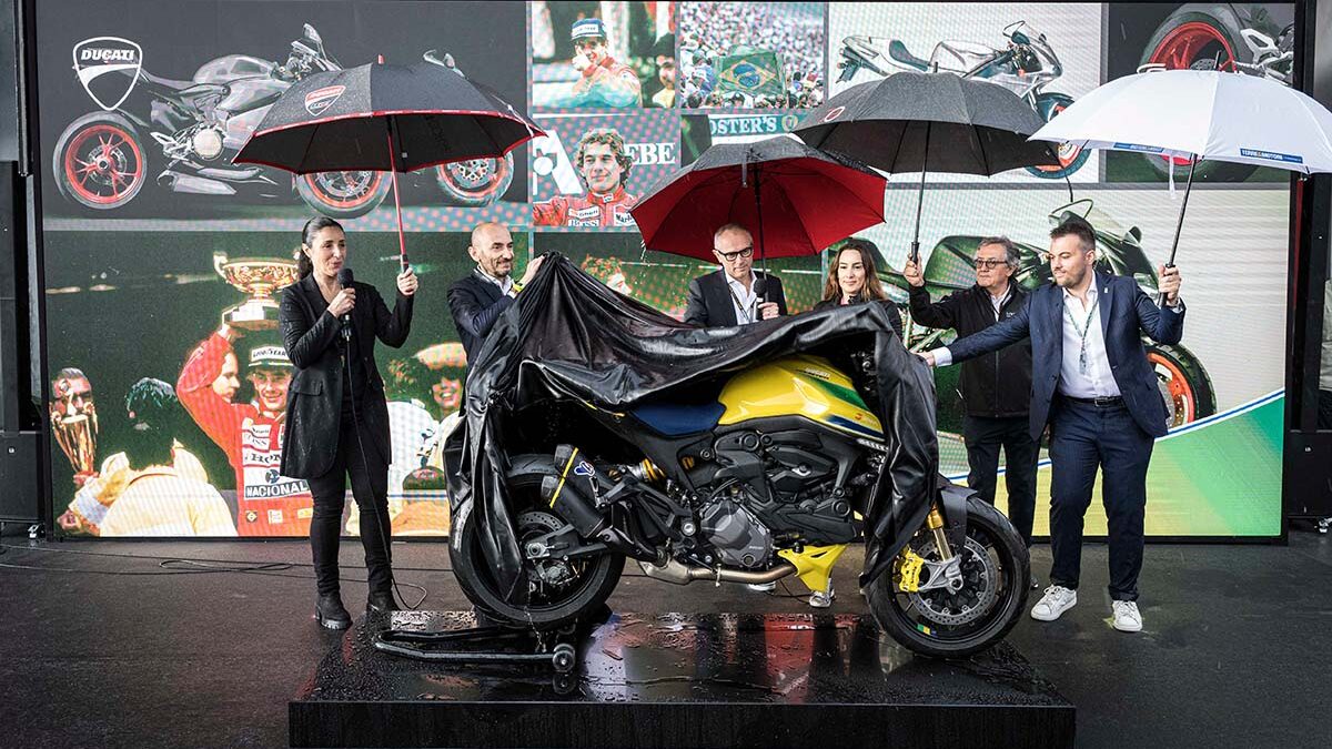杜卡迪为塞纳专门打造的摩托车在意大利制造和艾米利亚-罗马涅一级方程式大奖赛期间,在伊莫拉恩佐和迪诺法拉利赛道的围场中亮相。克劳迪奥·多梅尼卡利(杜卡迪首席执行官)和比安卡·塞纳(塞纳品牌首席执行官)分享了塞纳和杜卡迪之间的深厚友谊,斯蒂法诺·多梅尼卡利(一级方程式总裁兼首席执行官)也做出了贡献。